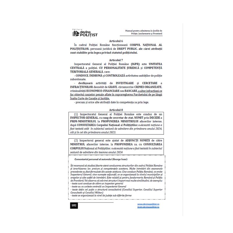 📖 Materie completă pentru toate școlile de poliție, jandarmerie și frontieră: